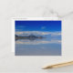 Uyuni salt plains in Bolivia with skyline & mountain reflected in the water covered plains.