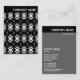 A vertical business card template with a black header with an image on the front. Company name in the header on the front and back with All other contact details on the back. The photo or image on the front can also be changed. The design also allows plenty of scope for additional customization.