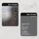 A vertical business card template with a black header with an image on the front. Company name in the header on the front and back with All other contact details on the back. The photo or image on the front can also be changed. The design also allows plenty of scope for additional customization.