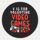 V Is For Video Games Funny Valentines Gamer Boy Me Classic Round Sticker