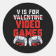V Is For Video Games Valentines Day Fun Boys Kids Classic Round Sticker