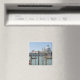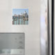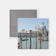 Aimant souvenir carré pour sur le frigo avec gondoles et gondoliers sur l'eau du Canal Grande avec l'église Père Noël Maria della Salute dans l'arrière - plan créant un paysage de ville romantique pendant les vacances d'été à Venise, Italie.