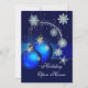 Invitation à la Fête de Vacances Open House avec des ornements bleu vif et des flocons de neige sur un arrière - plan bleu foncé. Les informations sur les parties sont personnalisables.