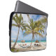 Tropical beach vacation destination with hammocks, beach chairs, and palm trees in Tulum, Mexico.