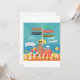 A vacation destinations sign post a cruise ship a plane and more travel themes. This design looks really effective on these Invitation