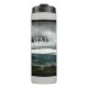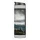 A digital landscape painting of Maine seen from the top of Cadillac Mountain. A storm is rolling in from the sea, as the marine layer is thick and about to consume the environment. The Pemaquid Point Lighthouse has been placed on the edge of the scene in the bay. A garden spider is on her string of silk in the bottom corner. Welcome to Vacationland, Maine. Statehood established in 1820. Image Copyright ©2023 Kimberly J Tilley.