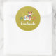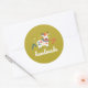 Autocollant étiquette de produit artisanal rond avec illustrations de vaches et de fleurs. Illustrations de fleurs et de formes simples dans un style scandinave cosy.