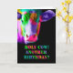 Toutes les couleurs de l'arc-en-ciel - une vache multicolore, sur un arrière - plan noir avec le texte "Vache Sainte ! Un autre anniversaire ?" cette carte est vide à l'intérieur pour votre propre message personnel.