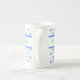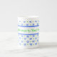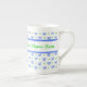 Une jolie tasse à café en porcelaine osseuse personnalisable, avec un motif d'arcs et de taches en bleu et vert sur un arrière - plan blanc d'un design peint à la main par Judy Adamson ! ! Une cafetière à thé et une bouilloire à thé sont également disponibles.