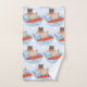 Caractère animal amusant le carlin heureux chevauchant un surf sur une vague océanique