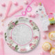 Cette assiette en papier célèbre tout ce qui est victorien avec des roses roses et un centre délicat.