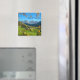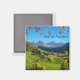Val di Funes with autumn leaves square text magnet
