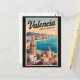 Valencia Spain Coast Illustration Travel Art Retro Postcard
