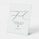 This sign features an elegant calligraphy script font and classic minimalist design. Edit all the colours and *most* wording to meet your needs. This sign makes the perfect addition to your modern wedding or event.