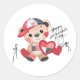 Our AI-Generated Love Teddy with Festive Hat Round Sticker is the perfect embellishment for your Valentine's Day gifts. This classic round sticker features a charming bear figure wearing a playful hat, crafted with eye-catching attention to detail.