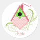 Great for so many purposes, identify things that belong to you by using these adorable Valentine Birdhouse Round Stickers. Valentine Birdhouse is from the Birdie Village Collection created by Debi Payne Designs. Valentine Birdhouse is a heart-shaped birdhouse in beautiful shades of pink and bright green. It gently nestled in delicate, swirling green vines. Valentine Birdhouse is perfect for Valentine’s Day, weddings, anniversaries or any time of the year. Personalize your sticker with your name or any text you choose.