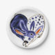 Valentine Bunny Rabbits Heart Blue & White Modern Paper Plate