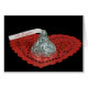Baiser de bonbons avec message d'amour sur dentelle de coeur rouge doily isolé sur noir. Le message sur étiquette papier peut être modifié.