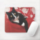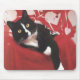 Valentine Cat Mousepad, a cute black and white cat surrounded by valentine hearts.