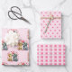 Valentine cute dogs dots square pattern pink wrapping paper sheet