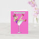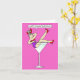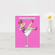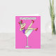 A fun cartoon of a lady wearing a purple outfit, red shoes and red feathers in her hair. The lady is reclining in a giant cocktail glass, saying 'Happy Valentine's Day' and the image is set against a bright pink coloured background.