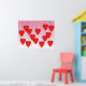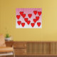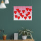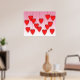Red shiny hearts hanging from strings on a pink and white background - perfect as a Valentines Day Poster!