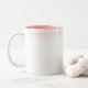 Tasse de café en blanc avec une empreinte d'accent du coeur. Intérieur couleur rose Customisez cet article ou achetez tel quel.