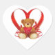 Sticker shown in a heart shape with a cute teddy bear Valentine heart print.