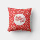 This throw pillow is shown in red and white colours with a cute festive Valentines heart print design.