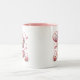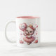 This ceramic coffee mug is shown with a cute Valentine teddy bear love greeting hearts print.