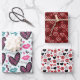 A Valentines Day Wrapping Paper Sheet Set In Red And White Paper With Different Shaped Hearts
