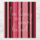 Fun and cute heart label with a pink red and burgundy stripe background and the words "I'm hung over your heart"