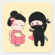 Valentine Ninja and Geisha on Yellow Square Sticker