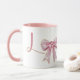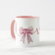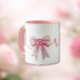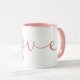 Coffee mug with pink bow, a pink stone in the center and the word love