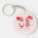 This cute Valentine's Day themed key chain features two gnomes dressed in pink with white hearts and holding red balloons. Personalize with your first names. Designed by Susan Coffey.
