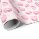 Cute and sweet Valentine theme wrapping paper featuring illustration of pink heart-shaped macarons.