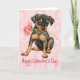 Puppy Love is in the air! Send Valentine's Day greetings with this card showing a cute Miniature Pinscher puppy holding a lovely rose. Great to send to your family or your Valentine who love Min Pins.