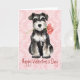 Puppy Love is in the air! Send Valentine's Day greetings with this card showing a cute Mini Schnauzer puppy holding a lovely rose. Great to send to your family or your Valentine who love Miniature Schnauzers.
