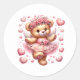 Sticker is shown in a cute teddy bear Valentine hearts print.