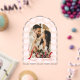 This design features a Love - themed Valentines day photo clear acrylic card in arch shape with arch photo on a love heart pattern in pink, white and red colours. This card can be easily edited with your personal photo and family name.