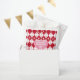 A cute red and pink argyle pattern with hearts. Customize with your own message.