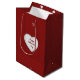 The paper bag is a vibrant shade of red, symbolizing love and passion. On the front, a heart-shaped design is intricately printed with delicate patterns, adding a touch of romance. Inside the heart, the words "Happy Valentine's Day" are beautifully written in elegant cursive font. The bag is perfect for gifting, with a soft, loving feel that reflects the warmth and affection of the occasion.