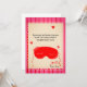 The design features a whimsical red sleep mask illustration on a vintage-inspired beige background with a pink striped border. The humorous poem reads: "Roses are red, mornings are hard. Let's stay in bed, I bought you a card."