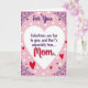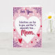 This Valentine's Day card has a soft pastel pink background that feels gentle and warm. At the center is a large white heart, like a big space set aside for a message. Near the top, the words “For You” appear in deep purple, written in a flowing cursive style. Inside the heart, it reads, “Valentines are fun to give, and that’s especially true... Mom.” with “Mom.” standing out in bright red cursive near the end. Smaller hearts float around the main heart in different sizes, mostly white with a few red and tiny purple ones mixed in. Each corner has a dark purple curled decoration that frames the design and gives it a thoughtful, classic touch. It feels meaningful because it’s simple, loving, and clearly meant to make Mom feel appreciated ❤️.