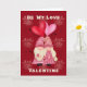 The design has a red background with hearts and cupids, two balloon hearts, and two Gnomes in love. The words on the inside can be changed.