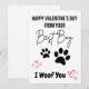 Brighten her Valentine’s Day with a hilarious twist! This Valentine's Day Card from a dog features a funny quote that's perfect for any dog mom or pet lover. Designed to capture the humour and unconditional love of our furry friends, this card is a unique and playful way to celebrate the holiday. Whether it’s from a beloved pup or a thoughtful gift for a dog enthusiast, this card is sure to bring smiles and laughter!