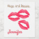 Celebrate the most romantic day of the year with this Valentine's Day Hugs and Kisses wine label that can be customized with your name. Wine label features the words Hugs and Kisses in red-brown script, an abstract set of pink lips, and red text for the name.