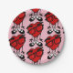 Pink Valentine's Day graphic red Heart character illustration pattern paper plate. Background colour can be customized.