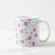 Valentine's Day Flowers Hearts Pink Pattern on a white coffee mug, beverage cup.