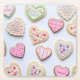 Valentine's day heart cookies on a blue background with sayings and decorations